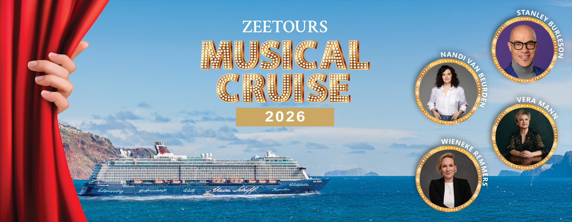 Muziek, reizen, beleving: Dit is geen gewone cruise – dit is de Zeetours Musical Cruise 2026. Boek nu en verzeker uzelf van een plek op dé musicalreis van het jaar! Er is slechts een beperkt aantal plekken beschikbaar!